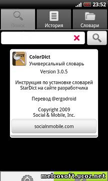 [left] ColorDict - словарь, поддерживающий формат StarDict. Позволяет вести поиск по множеству словарей сразу. История поиска, гибкие настройки, подключение/отключение словарей. Поиск по википедии и использование google translate [/left]