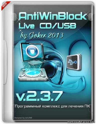 AntiWinBlock - программный комплекс, предназначенный для лечения зараженной системы Windows от всевозможных вирусов. Поможет в восстановлении системы, как новичку, так и продвинутому пользователю. В составе диска лучшие программы для борьбы с вирусами: AntiSMS, AntlWInLocker, uVS, Dr.Web. AntiWinBlock - имеет две оболочки: 1-из под реальной системы, 2-загрузочный Win7 PE.