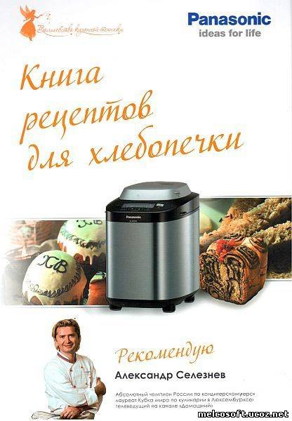 Книга рецептов для хлебопечки Panasonic от абсолютного чемпиона России по кулинарному мастерству, лауреата Кубка мира по кулинарии в Люксенбурге - Александра Селезнева. В книге вы найдете разнообразные рецепты хлеба, выпечки и теста с подробным описанием.