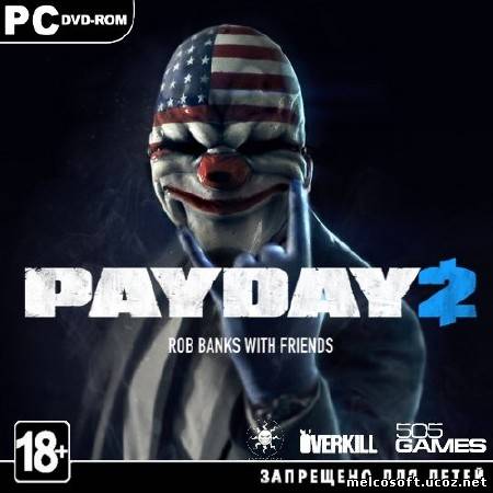 PayDay 2 — продолжение игры PayDay: The Heist, рассказывающей о четырех грабителях и их делах. В новой части игрокам предстоит поучаствовать в ограблении магазина, похищении ребенка, конечно, не обойдется и без ограбления банка, а также многого другого. Также в игре присутсвует возможность кастомизации персонажа.