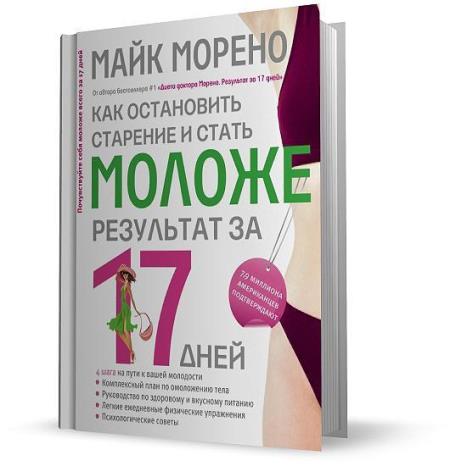 Доктор Майк Морено разработал четкую и простую в выполнении 17-дневную программу омоложения организма. Читателям предлагается сделать 4 простых шага, чтобы чувствовать себя моложе и здоровее. Каждый шаг программы сфокусирован на омоложении определенных частей вашего тела и организма: от сердца и легких до нервной системы и репродуктивных функций.