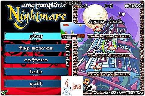 Amy Pumpkin's Nightmare – java-игра, где ты управляешь злой девочкой Эми, уничтожающей живые тыквы. Жанр/Genre: Аркада / Arcade Категория/Category: Java игры/Java games Размер экрана/Screen size: Разработчик/Developer: AnyPlays Платформа/Platform: Java Формат файла/File format: .jar Вид устройства/Appearance of the device: для телефонов/for phones Язык интерфейса/Interface language: английский (ENG) Размер/Size: 1,51 Mb Статус игры/The status of the game: бесплатная/free Подготовил/Prepared by: FileFast