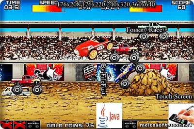 Очередные автогонки на внедорожниках размера XXL. Жанр/Genre: Гонки / Race Категория/Category: Java игры/Java games Размер экрана/Screen size: 176x208 176x220 240x320 360x640 Разработчик/Developer: Fugumobile Платформа/Platform: Java Формат файла/File format: .jar Вид устройства/Appearance of the device: для телефонов/for phones Язык интерфейса/Interface language: английский (ENG) Размер/Size: 1,22 Mb Touch Screen/Stylus: есть/there Статус игры/The status of the game: бесплатная/free Подготовил/Prepared by: FileFast