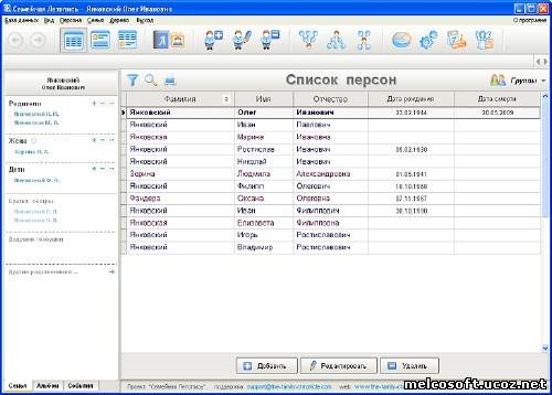 Описание: Собирая данные о своих родственниках, записывая биографию бабушек и дедушек, Вы сохраняете историю Вашей семьи для будущего поколения. Программа «Семейная летопись» поможет Вам справиться с этой сложной задачей легко и быстро. Теперь программа полностью поддерживает 64-битные версии ОС Windows Vista/7!