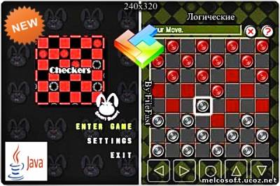 Java-игра в шашки с некоторым нюансом - назад бить нельзя. SmartBunny Checkers - имеет традиционное игровое поле 8 ? 8. Год выпуска: 2012 Жанр: Логические Категория: Java игры Размер экрана: 240x320 Разработчик: OmniGSoft Платформа: Java Формат файла: .jar Вид устройства: для телефонов Язык интерфейса: русский английский Размер: 1,33 Mb Подготовил: FileFast