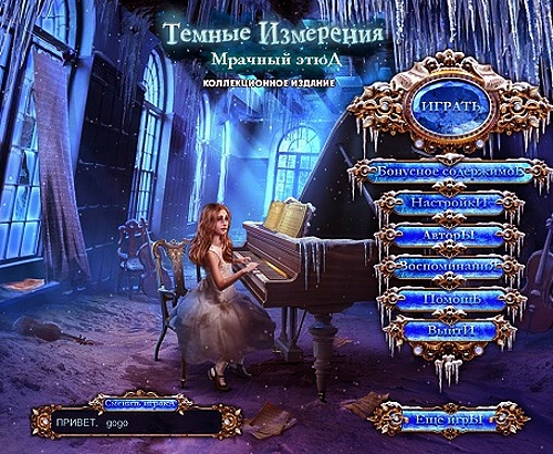 Информация об игре: Оригинальное название: Dark Dimensions 4: Somber Song Collector’s Edition Жанр: я ищу, квест, поиск предметов Издатель: Daily Magic Productions / BigFish Games Тип издания: лицензия Язык интерфейса: русский (Перевод команды «Наша Версия») Таблетка: не требуется Размер: 1.42 gb